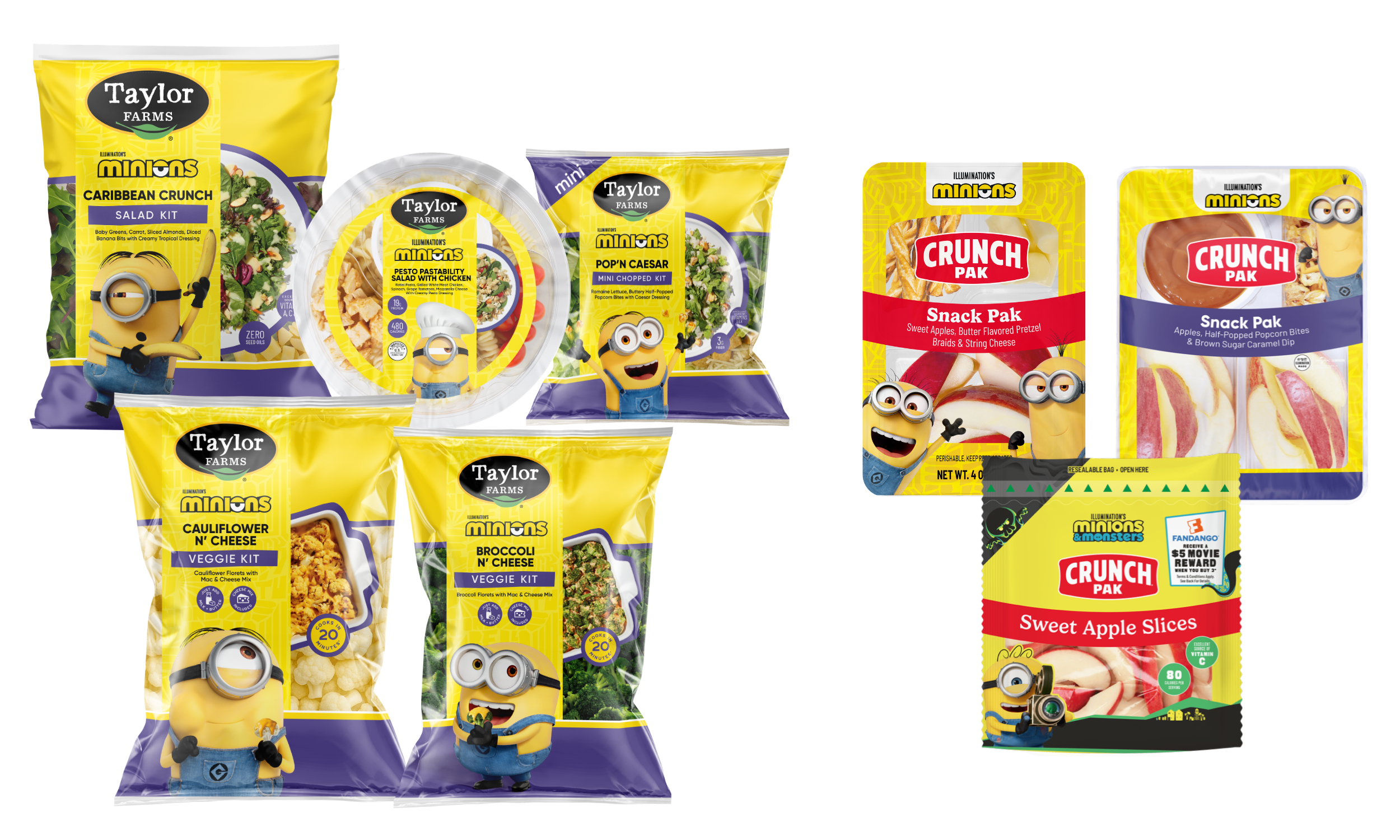 SALINAS, Calif. (April 14, 2026) — Taylor Farms has announced the launch of its new line of fresh snacks, salads, and vegetable kits inspired by Illumination’s beloved Minions. As the leading global producer of salads and healthy fresh foods, this collaboration between Taylor Farms, Universal Products & Experiences and Illumination coincides with the riotous new chapter in Illumination’s joyful animated universe, Minions & Monsters, hitting theaters July 1, 2026.