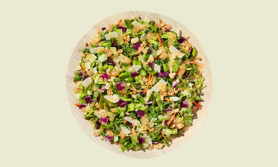 It’s got your favorite Italian vinaigrette, but this time, without any seed oils. In this new chopped salad kit, we start with a crunchy mix of chopped romaine, green and red cabbage, kale, carrot, and green onion. Then garnish with crunchy cheese and garlic crouton crumbles and sprinkle with shavings of aged Parmesan cheese. It’s the perfect leafy accompaniment to a hearty Italian dinner like chicken milanese, chicken parm, or a bowl of minestrone soup. Make this salad blend even more quintessentially Italian by adding salami strips, sliced red onion, black olives, or tomatoes—plus pepperoncini if you like a little spice.